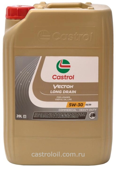 Castrol Vecton Long Drain 5W-30 E6/E9 представляет собой усовершенствованное полностью синтетическое дизельное моторное масло для тяжелых условий эксплуатации, специально разработанное для увеличения срока службы масла и дополнительной экономии топлива. Оно подходит для современных дизельных двигателей с высокими эксплуатационными характеристиками, соответствующих требованиям по выбросам вредных веществ от Euro I до Euro VI. Моторное масло Castrol Vecton Long Drain 5W-30 E6/E9 поставляется в канистрах 20 л и бочках 208 л.