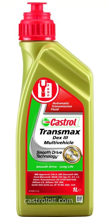 Автоматические коробки передач коммерческого транспорта и легковых автомобилей. Некоторые гидравлические системы рулевого управления. Масло Castrol Transmax Dex III Multivehicle имеет следующие спецификации и одобрения: Allison C4; Allison TES 389; MAN 339 Z1; MAN 339 V1; MB-Approval 236.9; Voith H55.6335.xx; Volvo Transmission Oil 97341; ZF TE-ML 04D; ZF TE-ML 14A; Meets Mercon; Dexron IIIH; Volvo Transmission Oil 97340.