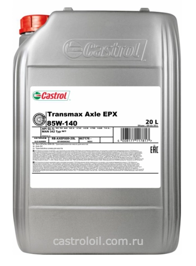 Castrol Transmax Axle EPX 85W-140 – многоцелевое трансмиссионное масло для мостов, которое может использоваться в дифференциалах, главных передачах и других узлах пассажирских и коммерческих транспортных средств, в которых требуется соответствие отраслевому стандарту API GL-5. Данный продукт одобрен компанией ZF для применения в различных видах коммерческой техники, включая мосты внедорожной и сельскохозяйственной техники. Трансмиссионное масло Castrol Transmax Axle EPX 85W-140 поставляется в канистрах 20 л и бочках 208 л.