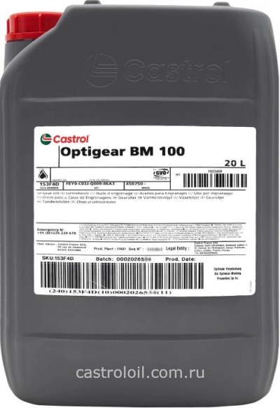 Для всех типов промышленных редукторов, в особенности работающих в условиях чрезвычайно высоких нагрузок, при которых традиционные масла с ЕР присадками неработоспособны. Долговременное смазывание в условиях самых экстремальных механических нагрузок, вибрации и при повышенных температурах. В цилиндрических, конических и червячных редукторах, работающих при малых и средних нагрузках. В редукторах, подвергающихся высокому трению скольжения и высокому давлению на поверхности по Герцу до 2000 Н/мм2 (лифты, прокатные станы, ленточные конвейеры, экструдеры, вибрационное оборудование, измельчители, высокоскоростное маятниковое оборудование и сепараторы). В эксцентриках, кулачковых валах и планетарных зубчатых передач. В регулируемых приводах (PIV). В герметично закрытых зубчатых муфтах. Во всех типах подшипников, особенно сферических роликовых, бессепараторных цилиндрических роликовых и упорных подшипниках. В циркуляционных системах. Рекомендации к применению масла Castrol Optigear BM 100: легко смешивается и совместимо с редукторными маслами на основе минерального масла не содержащих присадок на основе свинца, однако наиболее эффективно при использовании в чистом виде; совместимо с цветными металлами; совместимо с краской и традиционными материалами уплотнений; возможна механическая очистка в любых фильтровальных установках и сепараторах.